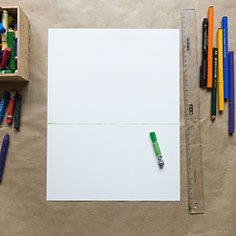 Trek met een groen krijtje een horizontale lijn op je papier, net iets onder het midden.