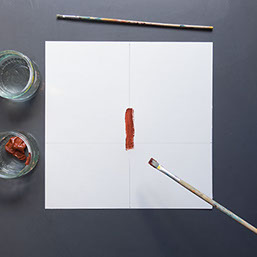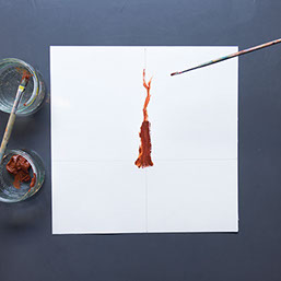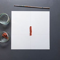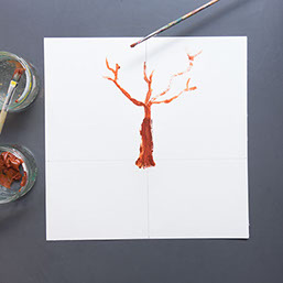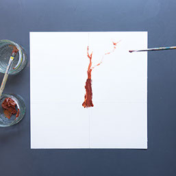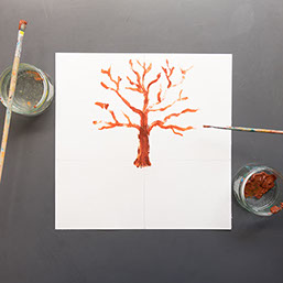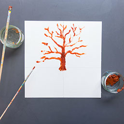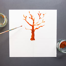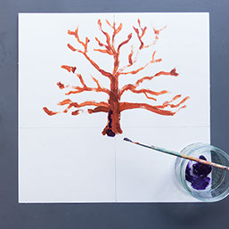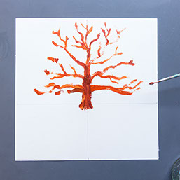 Schilder met bruine verf een boomstam op de verticale lijn. Begin de stam iets onder de horizontale lijn. Ga nu verder met de takken.