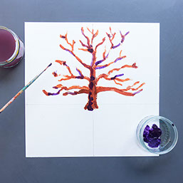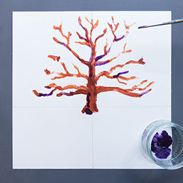 Maak sommige takken in paars. Dat geeft meteen meer geheimzinnigheid aan jouw boom.
