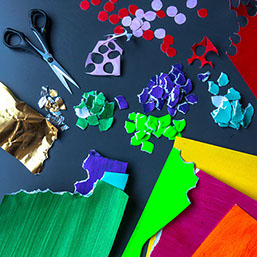 Terwijl de verf aan het drogen is maak jouw snippers. Hou de kleuren apart van elkaar...