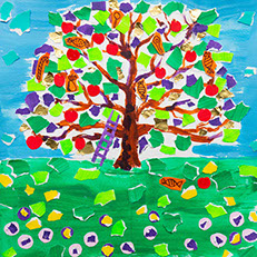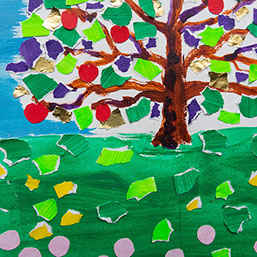 Een tuin is een geliefd onderwerp bij veel kunstschilders. Elk jaargetijde heeft haar eigen charme als het om kleuren, vormen en licht gaat. De Oostenrijkse schilder Gustav Klimt had een tuin achter zijn huis met grote bomen en bloembedden. Zijn schilderij van de appelboom is waarschijnlijk daar gemaakt. Sommige mensen houden van eenvoudige kleurvlakken maar Klimt was juist dol op eindeloze versieringen. Hij maakte overal een drukbezet feestje van. Het schilderij is gemaakt uit duizenden kleurige verfstreekjes. Het zijn net mozaïeksteentjes.